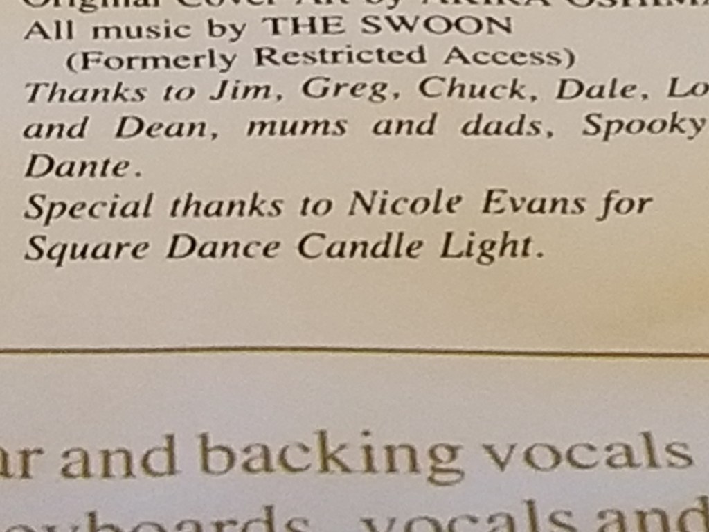 It’s a song about monogamy, getting lost in the dating game, and forgetting who’s who and who you’re supposed to be with. And there’s something in it about the slow progress of the soul learning to love. I must have been either a freshman or sophomore in college when I attended my first and only square dance. I went as square dance partner for eleven-year-old Nicole Evans, granddaughter of the head of the college art department along with her sister and step-dad. My radiant dance partner and I dutifully learned the choreography and protocols, and we followed the instructions of the caller: “Bow to the corner, bow to your partner. Two steps forward, one step back.” The switching of partners seemed an apt metaphor for the ever-revolving relationships of the dating scene. In contrast to that inconstant world, eleven-year-old Nicole beamed like a bright candle of innocence and untainted joy as she rotated through her dance partners. She got props for the inspiration in the liner notes. Shine on!