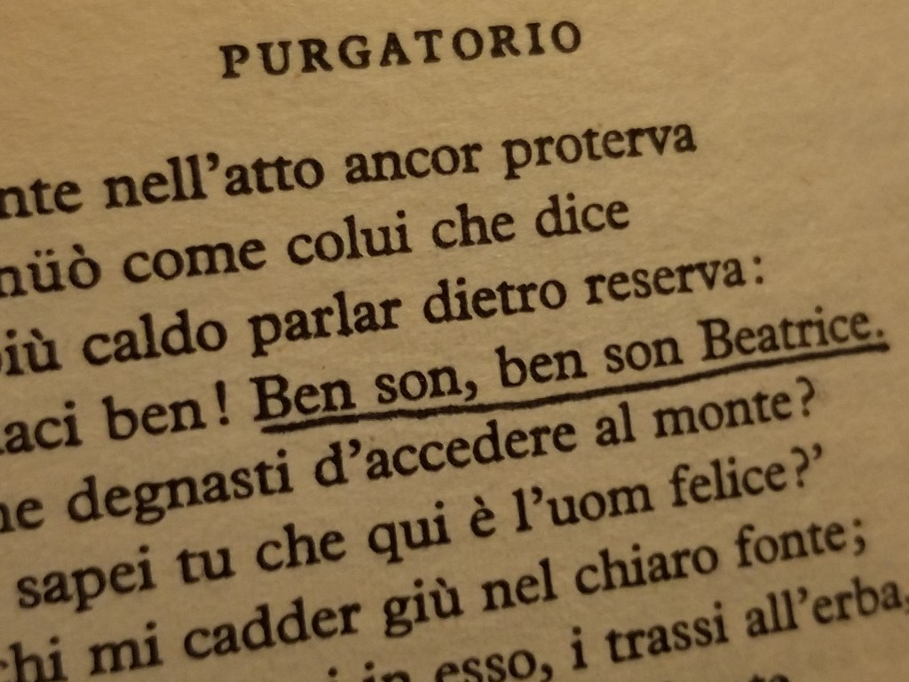 The chorus of the song is in Italian. Not that we knew Italian, but Dante did. Beatrice introduces herself to Dante in the dead center of the three-volume epic poem by repeating (in Italian) the words “I AM, I AM BEATRICE,” thereby alluding to the revelation of the name of God in the Exodus narrative: